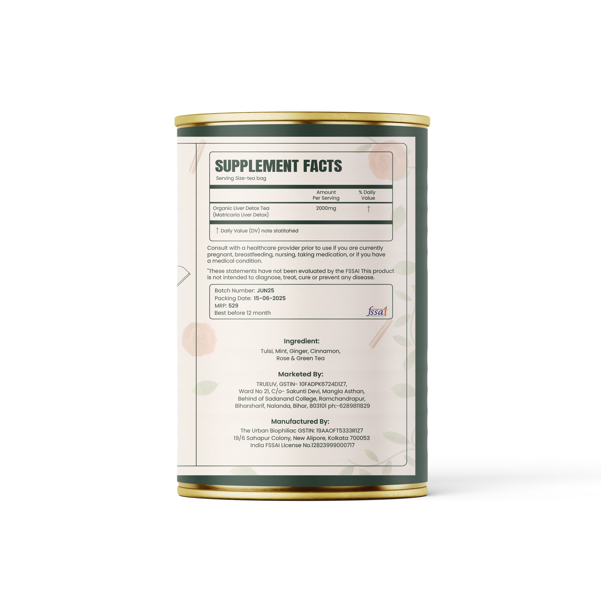 Truliv’s Liver Detox Green Tea is a revitalizing blend of premium green tea leaves and detoxifying herbs crafted to naturally support liver health and overall wellness. Infused with ingredients like dandelion, tulsi, and lemongrass, this refreshing brew helps flush out toxins, boost metabolism, and restore your body’s inner balance.