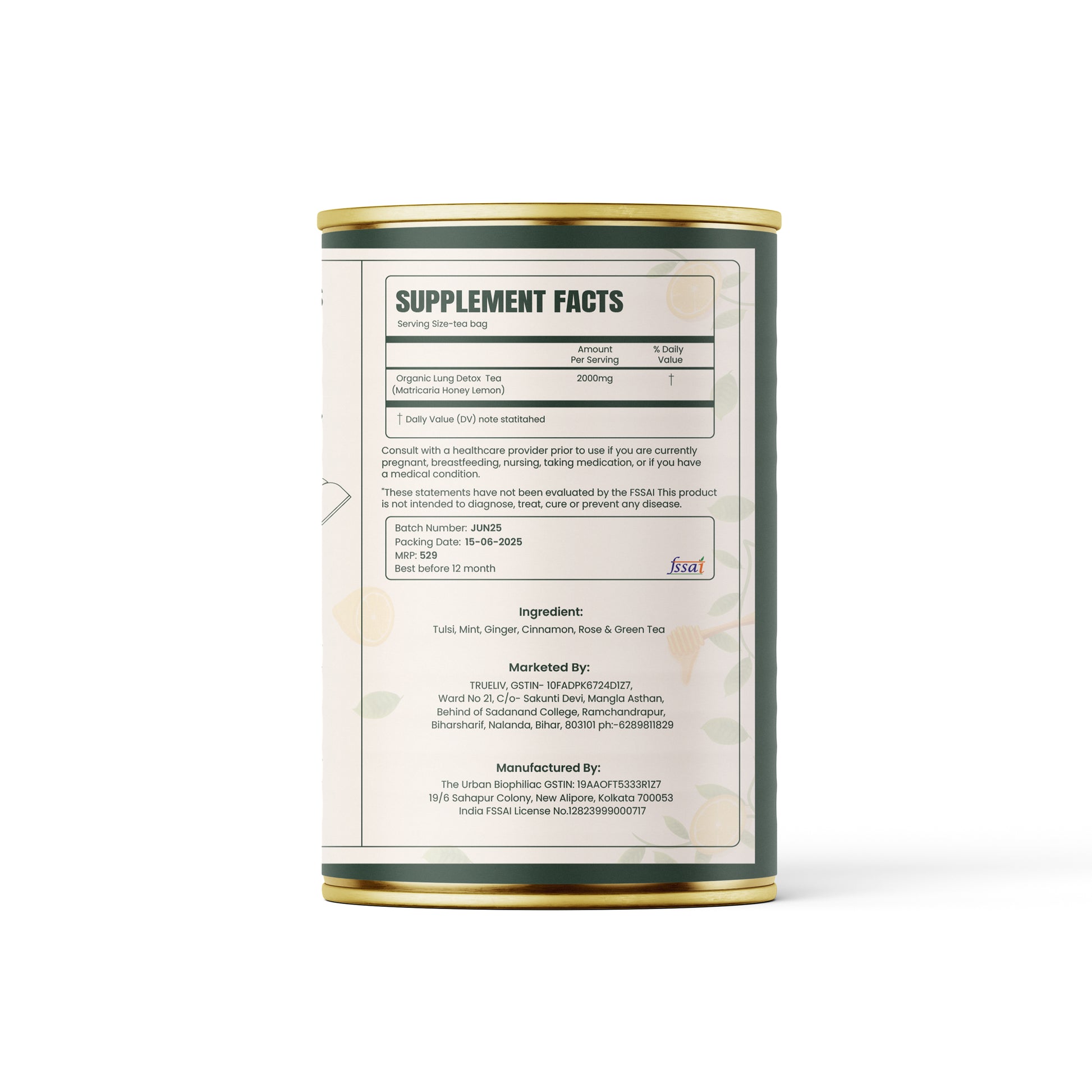 Truliv’s Lung Detox Green Tea is a cleansing herbal infusion designed to purify your system and support healthy respiratory function. Blended with premium green tea, tulsi, mulethi, and mint, this refreshing tea helps clear toxins, soothe the throat, and promote easier breathing a gentle daily ritual for inner renewal.