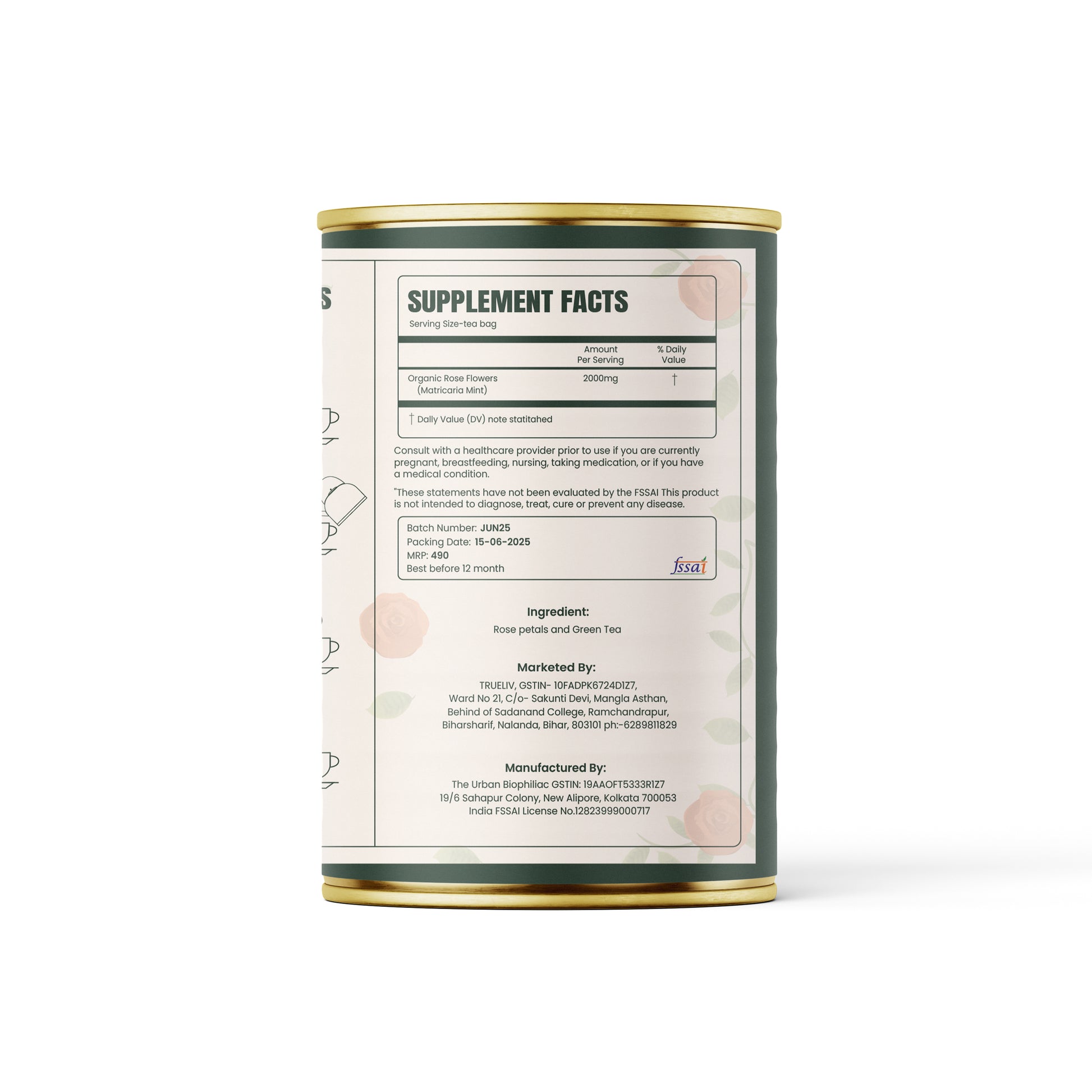 Truliv’s Rose Green Tea is a graceful blend of handpicked green tea leaves and fragrant rose petals, crafted to soothe your senses and elevate your mood. Each sip unfolds with a delicate floral aroma and a gentle sweetness that refreshes your body and relaxes your mind, a perfect union of beauty and balance in every cup.